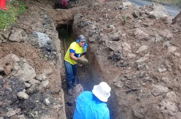 “En la zona había un fuerte derrame de agua potable, logramos detectar tres roturas en un tramo de tubería. La mayor parte del problema es la presión del agua y la antigüedad de la tubería, esta ya tenía más de 20 años”, aseguró Daniel Arias, técnico de la Región Metropolitana de ANDA.