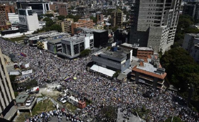La multitudinaria manifestación arrancó con el impacto que generó el anuncio del general de división de la Aviación venezolana, Francisco Yánez, quien no reconoció a Maduro en un video difundido en redes sociales, convirtiéndose en el militar activo de más alto rango en reconocer a la vez a Guaidó.