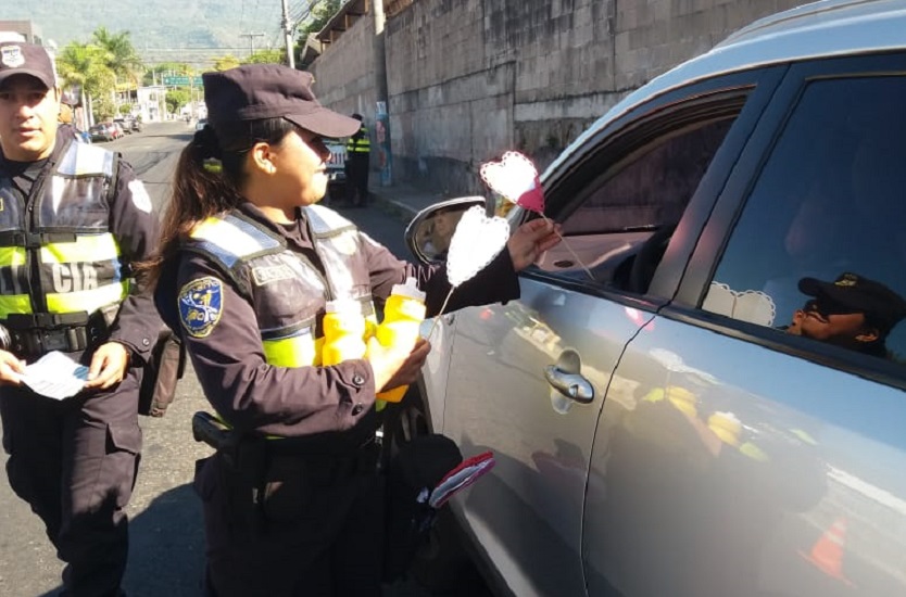 El día del Amor y la Amistad también llegó a las calles de Santa Tecla junto a los agentes de Tránsito Terrestre quienes realizaron un inusual operativo.