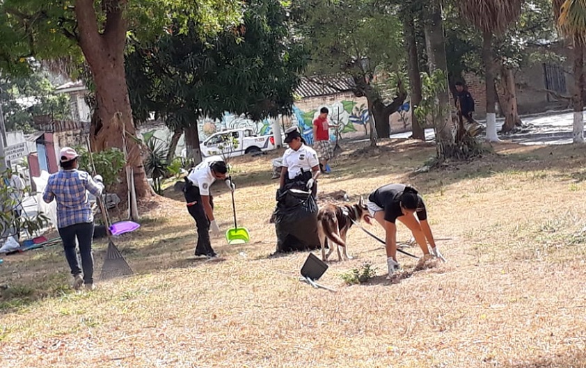 La jornada de limpieza nace como una acción preventiva coordinada por la Junta Directiva de la Colonia Flor Blanca y agentes comprometidos con el enfoque de Policía Comunitaria, en dicho sector al poniente de la capital.