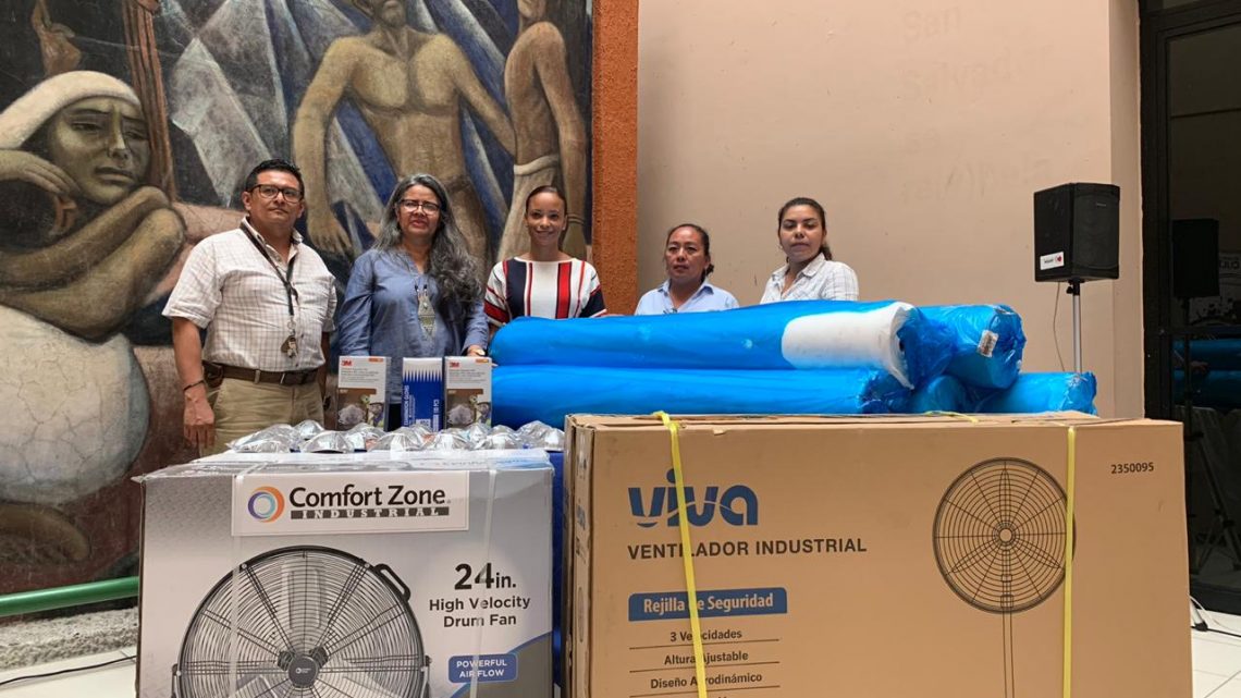 Dentro del donativo se entregaron materiales como: Yardas de pelum o papel absorbente, guantes, ventiladores industriales de piso y de pedestal, y mascarillas para la humedad y el polvo.