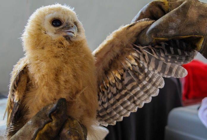 Un pequeño polluelo de búho de montaña podrá surcar los cielos, al crecer, gracias a los cuidos de una familia que lo rescataron la semana pasada en la colonia Santa Leonor en el municipio de San Marcos.