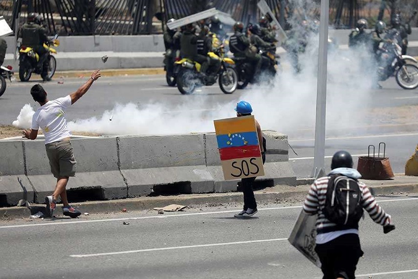 Agentes de la GNB, policía militarizada, arrojó gases lacrimógenos en este punto de la capital venezolana donde se encuentran varios cientos de manifestantes, y algunos de ellos han respondido con bombas molotov o piedras.