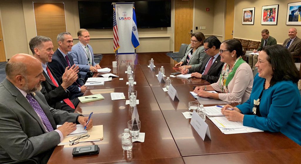 Posteriormente, la titular de la Cancillería conversó con el Administrador de la Agencia de los Estados Unidos para el Desarrollo Internacional (USAID), Mark Green, con quien pasaron revista a los diferentes proyectos ejecutados a favor de la población salvadoreña.