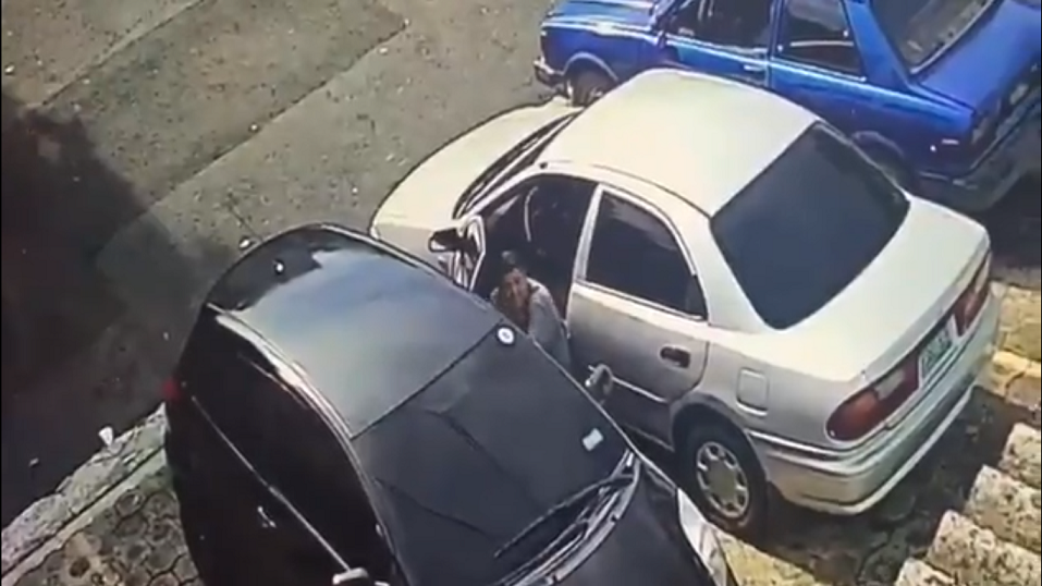 En un video difundido este martes en las redes sociales de RED INFORMATIVA SV se muestra a un hombre a bordo de un vehículo blanco que se estaciona a la par de otro sedan color negro. Minutos después el hombre logra abrir la puerta del auto negro para hacer el hurto.