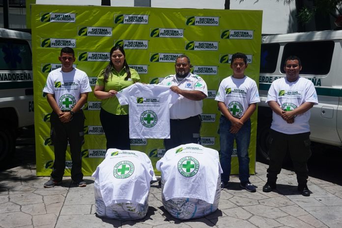 El SISTEMA FEDECRÉDITO se sumó a la ardua labor de los socorristas y voluntarios de Cruz Verde Salvadoreña, al realizar un significativo donativo de 300 CAMISETAS, en apoyo al personal que en estas vacaciones Fiestas Agostinas velan por las atenciones y las emergencias médicas de la población, durante la ejecución del Plan “Divino Salvador del Mundo 2019”.