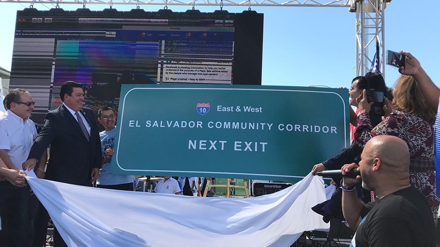 Desde este sábado 21 de septiembre, cuando los conductores pasen por la autopista 10 en la salida de la avenida Vermont, en L.A., podrán ver el rótulo que se lee: “El Salvador Community Corridor”.