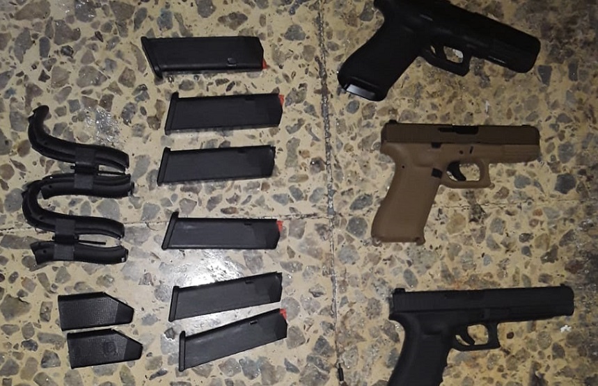Mientras, en una segunda encontraron otras dos armas de fuego, también desarmadas, de la misma marca, con cuatro cargadores y accesorios para estas.