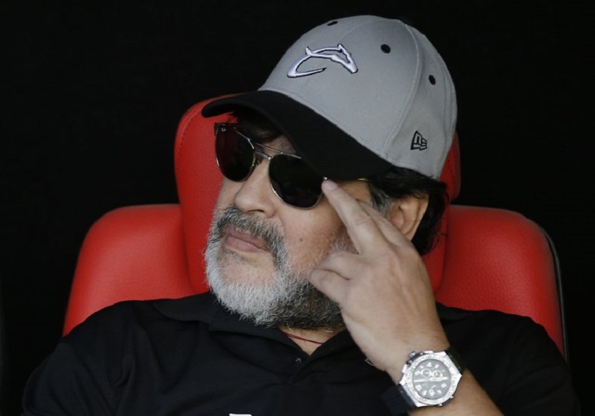 El excapitán y campeón del mundo con Argentina en 1986 posó con la casaca blanca y una franja azul horizontal en el pecho en una fotografía publicada por su abogado Matías Morla en Twitter.