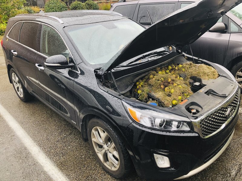 Resulta que las ardillas almacenaron más de 200 de ellas debajo del capó de la camioneta de la familia.