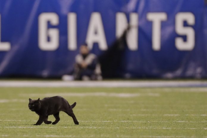 EAST RUTHERFORD, Nueva Jersey, EE.UU. (AP) — Un gato negro acaparó la atención durante unos minutos en el partido del lunes por la noche entre los Cowboys de Dallas y los Giants de Nueva York.