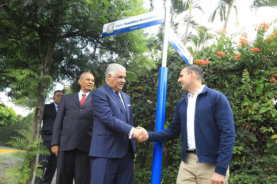El alcalde de San Salvador, Ernesto Muyshondt, inauguró este martes la calle República Dominicana la cual abarca desde la Plaza Juan Pablo Duarte, también conocido como Plaza República Dominicana, hasta la Plaza República Oriental del Uruguay, también conocido como redondel Luceiro.