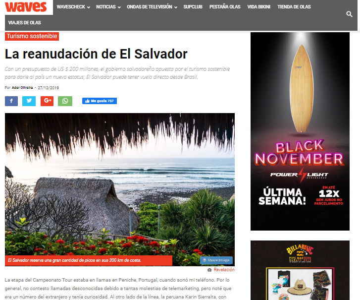 WAVES, el sitio especializado de surf y uno de lo más importantes de Brasil, destacó en uno de sus artículos que El Salvador apuesta por un turismo sostenible para darle al país un nuevo estatus. Entre los planes que pone en marcha el gobierno está Surf City.