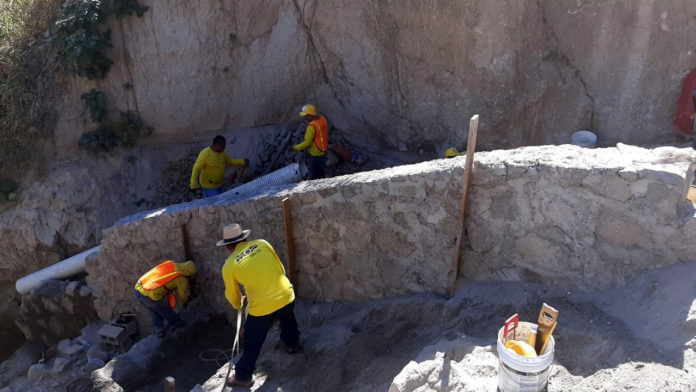 Actualmente, se trabaja en tareas de relleno compactado en un volumen de 600 metros cúbicos, y en actividades finales de construcción de gradas disipadoras y muros laterales.