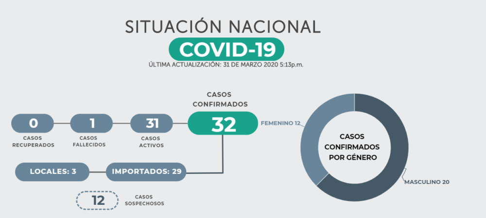 Indicó que no hay nexos epidemiológicos aparentes en el territorio nacional y que el número de casos se mantiene igual por el momento: tres contagiados con pronóstico grave y uno en estado crítico. Además, hay 27 pacientes estables.