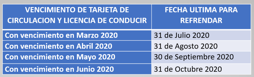 El viceministro de Transporte, @scastelar, informó que a las personas, que se les venció la tarjeta de circulación y licencias en marzo, tienen hasta el 31 de julio para renovar documentos. Los de abril hasta agosto, mayo hasta septiembre y junio hasta el 31 de octubre. pic.twitter.com/4XWIAqYBBC