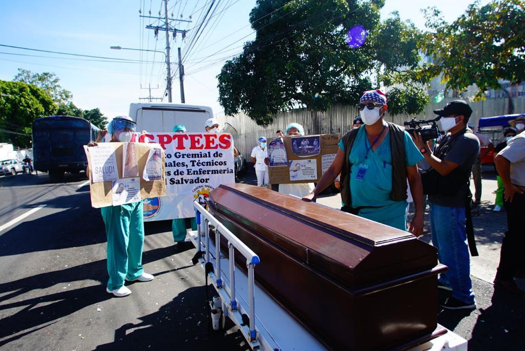 Empleados de salud pertenecientes a diferentes sindicatos exigieron este jueves la aprobación de un estado de excepción, con el fin de reducir el número de contagios por COVID-19 en El Salvador que ya supera los 8,800 contagios y 243 fallecidos.