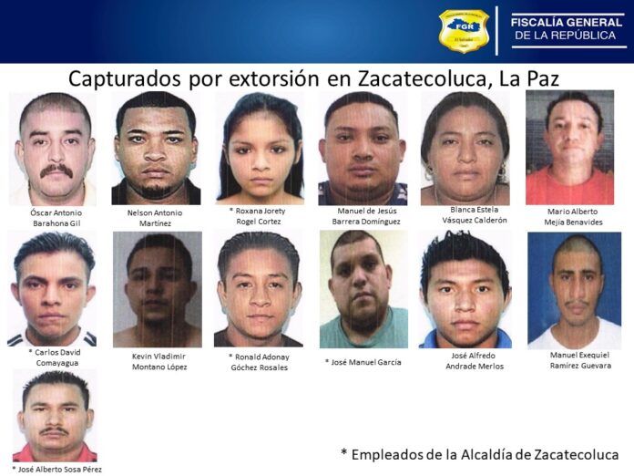 Entre los detenidos se encuentran empleados de la Alcaldía de Zacatecoluca; quienes extorsionaban junto al resto de capturados a un comerciante del centro de ciudad, al que le exigían US$75.00 quincenales a cambio de no atentar contra su vida.