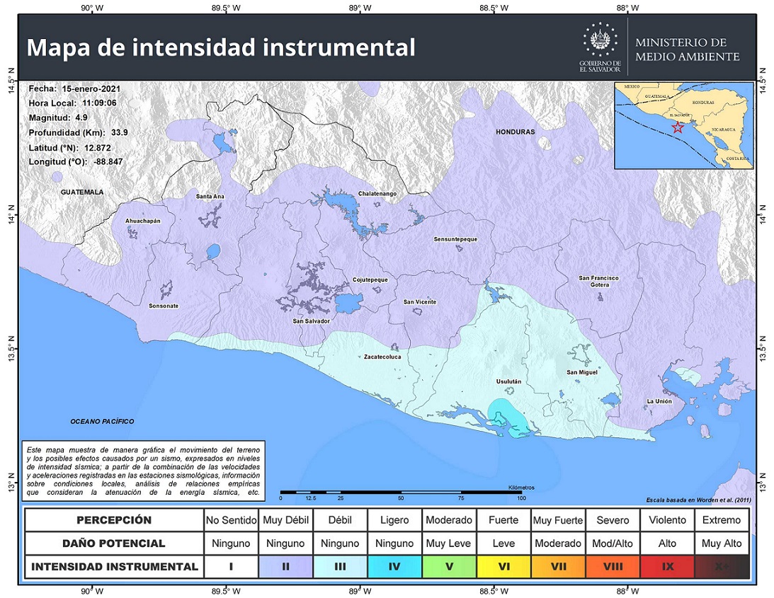 El fenómeno se ubicó a 42 kilómetros al sur de la desembocadura del Río Lempa y tuvo una profundidad de 33 kilómetros. Algunos salvadoreños del Área Metropolitana de San Salvador lo percibieron a las 11:09 am.