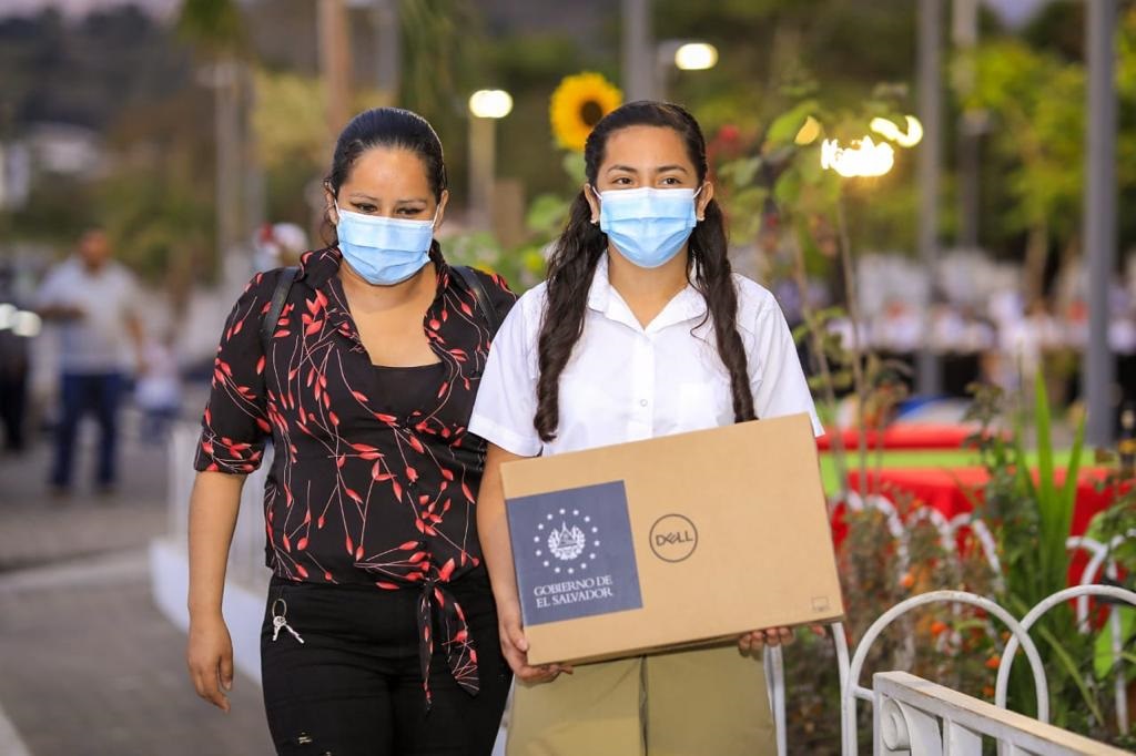 «Este es un día importante para nuestro país, un día que inicia el cierre de las diferencias en educación, donde iniciamos el cierre de la brecha tecnológica», dijo la ministra de Educación, Carla Hananía, quien entregó computadoras en el Instituto Nacional General Francisco Morazán, en San Salvador.
