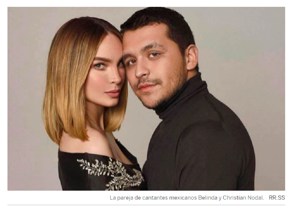 Belinda y Nodal se conocieron en una de las últimas ediciones de La Voz, donde ambos eran coachs. Los artistas confirmaron los rumores de su relación en agosto de 2020 para sus más de 20 millones de seguidores en Instagram. Con el paso de las semanas, la relación se intensificó, Belinda, de 28 años y siete mayor que el cantante, lo presentó a su familia y se marcó las iniciales de Nodal en la muñeca junto a un corazón. El artista charro, vestido habitualmente con botas y sombrero norteño, fue más allá con los mensajes en tinta y se dibujó los ojos azules de Belinda en el pecho, su nombre cerca de una oreja y una flecha en la muñeca.