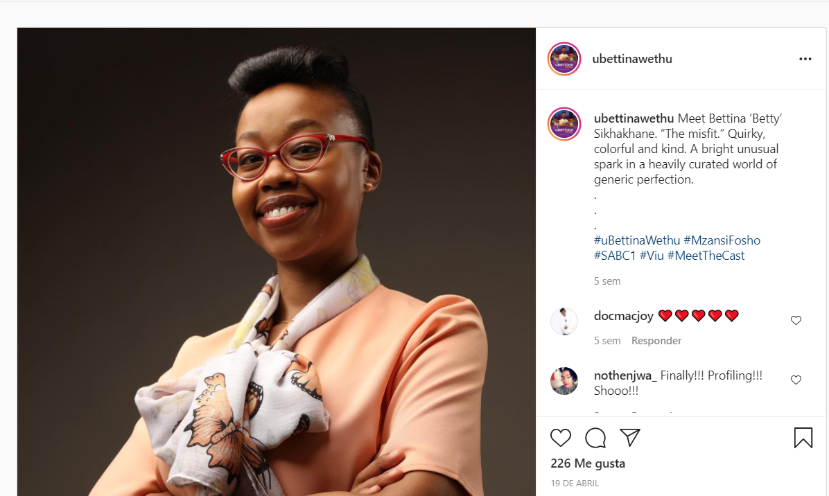 En esta nueva versión sudafricana de la exitosa historia colombiana podemos ver a Bettina, o Betty Sikhakhane, quien conquistará al mundo con la inteligencia y carisma sin igual característicos del personaje.