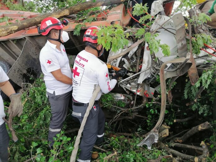 Al lugar del accidente acudió Comandos de Salvamento, Bomberos de El Salvador, Cruz Verde Salvadoreña y Cruz Roja Salvadoreña, quienes tuvieron que hacer uso de equipo hidráulico para extraer los 2 cuerpos que quedaron atrapados dentro del camión.