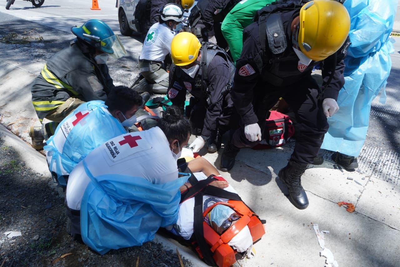 El rescate se hizo en conjunto con diferentes entidades que conforman el Sistema de Protección Civil, en el cual personal de Atención Prehospitalaria de la filial de Socorrismo brindaron atención a víctimas que quedaron atrapadas producto de un accidente de tránsito.