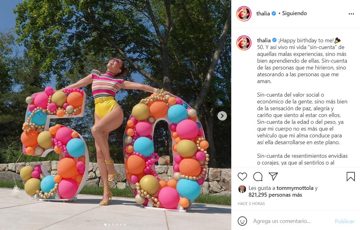 Thalía llegó a los 50 años y lo celebró luciendo tan espectacular como siempre.