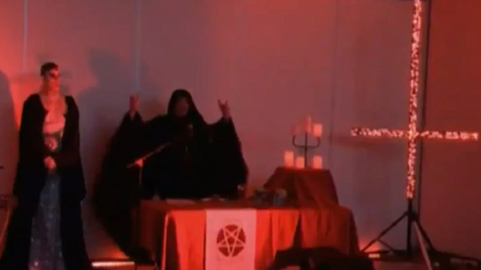 En ese momento, se cortó el video y aparecieron imágenes de lo que parece ser un ritual satánico, en el que una persona que está vestida con un manto negro dice en voz alta: “¡Salve, Satanás!”.