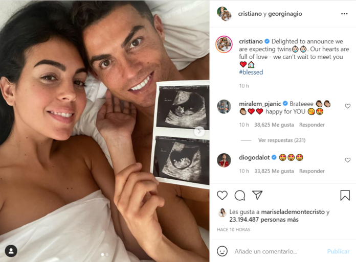 A través de un tierno mensaje en su cuenta de Instagram, el delantero portugués, de 36 años, comunicó al mundo la feliz noticia.