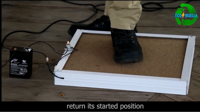 El Salvador – (Instituto Nacional Benjamín Estrada Valiente Metapán ) – Un paso un voltio. (Eco-huellas) para generar energía eléctrica limpia y amigable con el medio ambiente utilizando la energía cinética que el ser humano produce al caminar.
