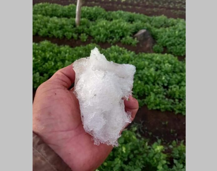 El Ministerio de Medio Ambiente y Recursos Naturales (MARN) informó que las plantaciones en el municipio de Las Pilas, Chalatenango, se cubrieron con escarcha de hielo debido a las bajas temperaturas.