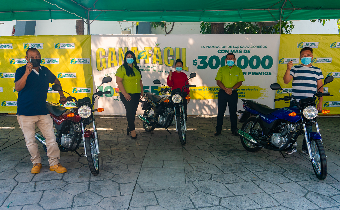 El SISTEMA FEDECRÉDITO continúa premiando la preferencia de los salvadoreños realizando este día la entrega de premios del segundo sorteo de la promoción de los salvadoreños GANA FÁCIL. En esta premiación se entregaron 233 premios a sus afortunados ganadores de 3 pick up Volkswagen SAVEIRO, 20 motos Suzuki, 30 premios en efectivo de US $500.00, 30 premios en efectivo de US $250.00, 60 premios en efectivo de US $200.00 y 90 premios en efectivo de US $100.00.
