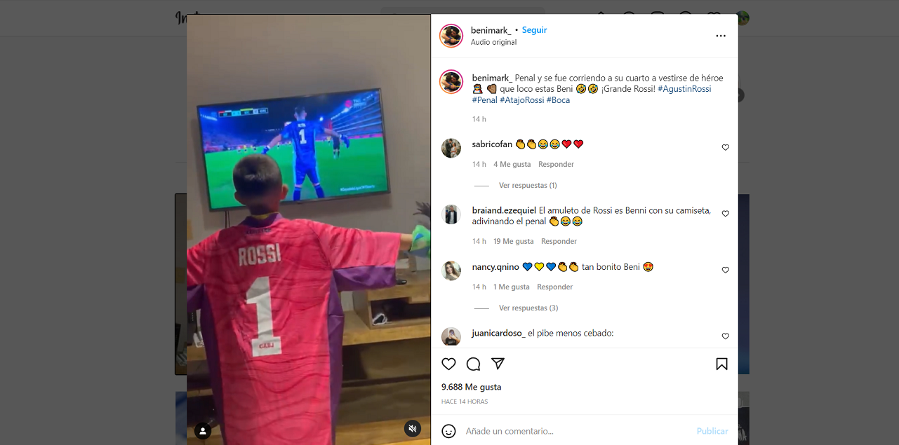 Un rato después, se hizo viral un video de un niño que “atajó” el disparo junto a su ídolo. “Penal en contra y salió corriendo para su cuarto a vestirse de héroe”, escribió su padre.