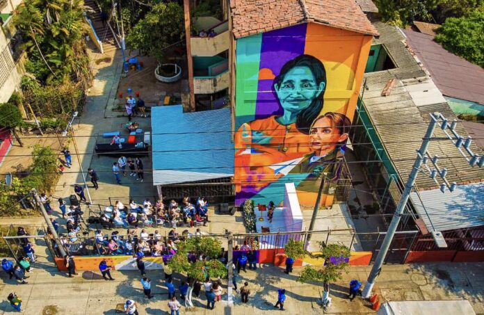 En el marco del Día Internacional de la Mujer, el alcalde capitalino, Mario Durán, visitó el Barrio Lourdes, en el Distrito 6, e inauguró un mural inspirado en dos importantes salvadoreñas: Sandra Hernández, piloto militar de helicóptero y Paula López (†) activista de la lengua Náhuatl.