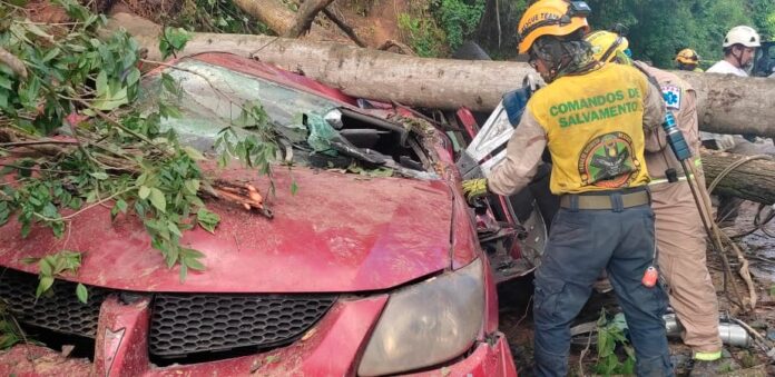 El vehículo donde se conducía la víctima quedó bajo un árbol que se desprendió de un derrumbe de tierra. Personas que transitaban en la zona luchaban para retirar y despejar el árbol que estaba sobre Delgado Montoya.