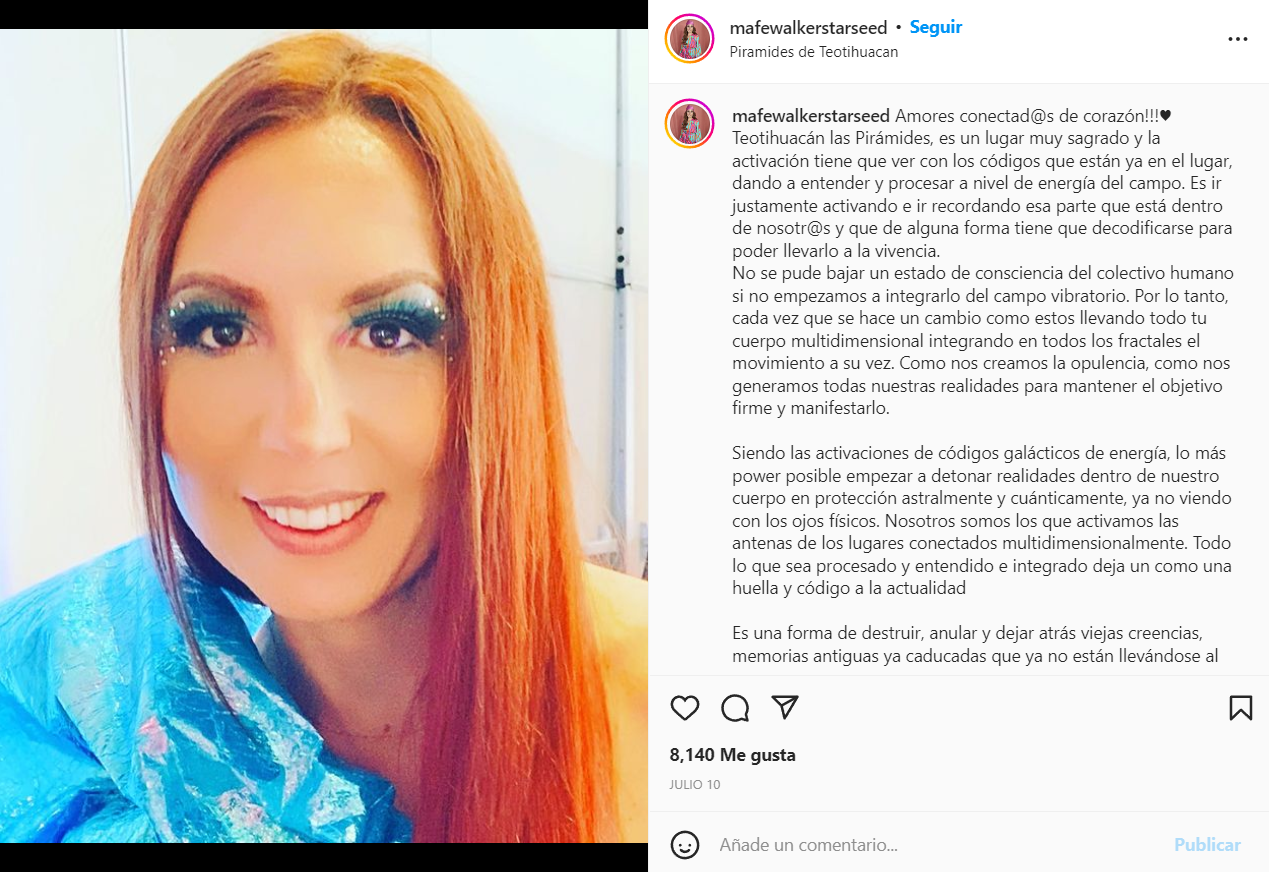 La médium, Mafe Walker, quien autodenomina su capacidad o don, como una habilidad para colocar unas ondas en “frecuencia máxima”, y así poder establecer la comunicación con los extraterrestres, ya no puede aparecer ni en los medios, ni en las redes sociales, sin causar revuelo, pues desde que pronunció las palabras: “Inamejika jia ena iquint anamé”, su carrera despegó a niveles intergalácticos.