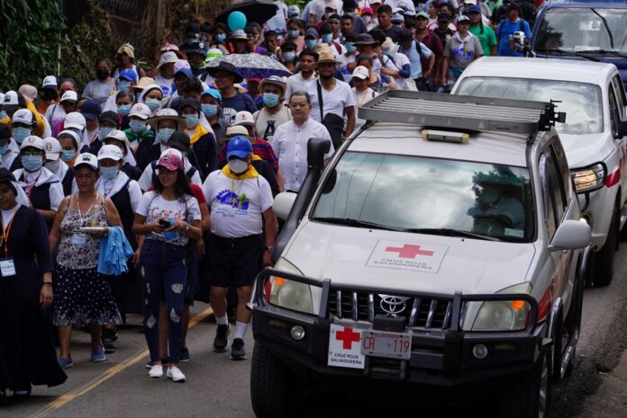 En el acompañamiento a la peregrinación de la cuna del primer Santo de El Salvador participaron un un aproximado de 35 voluntarios, 4 ambulancias, 4 vehículos, dos unidades motorizadas que realizaron avanzadas para una respuesta oportuna.