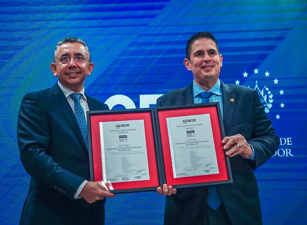 La Comisión Ejecutiva Hidroeléctrica del Río Lempa (CEL) informó este viernes que la firma internacional AENOR entregó oficialmente la certificación de los Sistemas de Gestion Antisoborno ISO 37001 y Gestión de Cumplimiento ISO 37301 como una muestra de la lucha contra la corrupción que impulsa la actual administración.