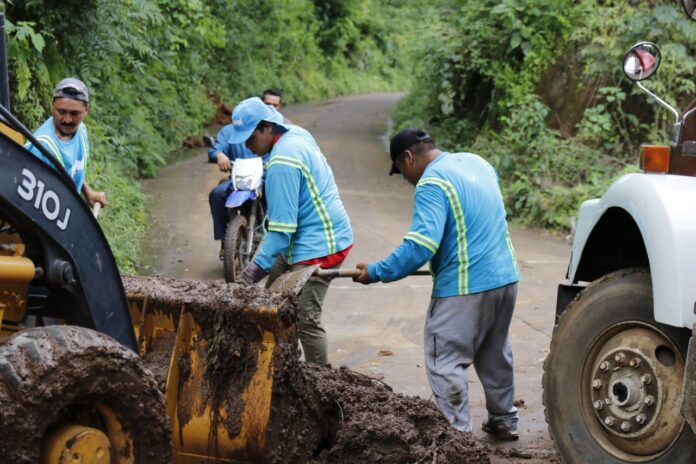 En Juayúa, Ahuachapán, se realizan labores de remoción de escombros para facilitar el acceso a unos 11 cantones y caseríos de esa zona del occidente del país.
