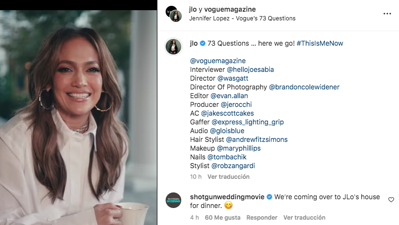 Como parte de la serie de YouTube «73 questions», en donde las celebridades responden una serie de preguntas rápidas sobre una variedad de temas, la revista le preguntó cuál de los miles de looks que ha lucido durante su carrera ha sido su favorito.
