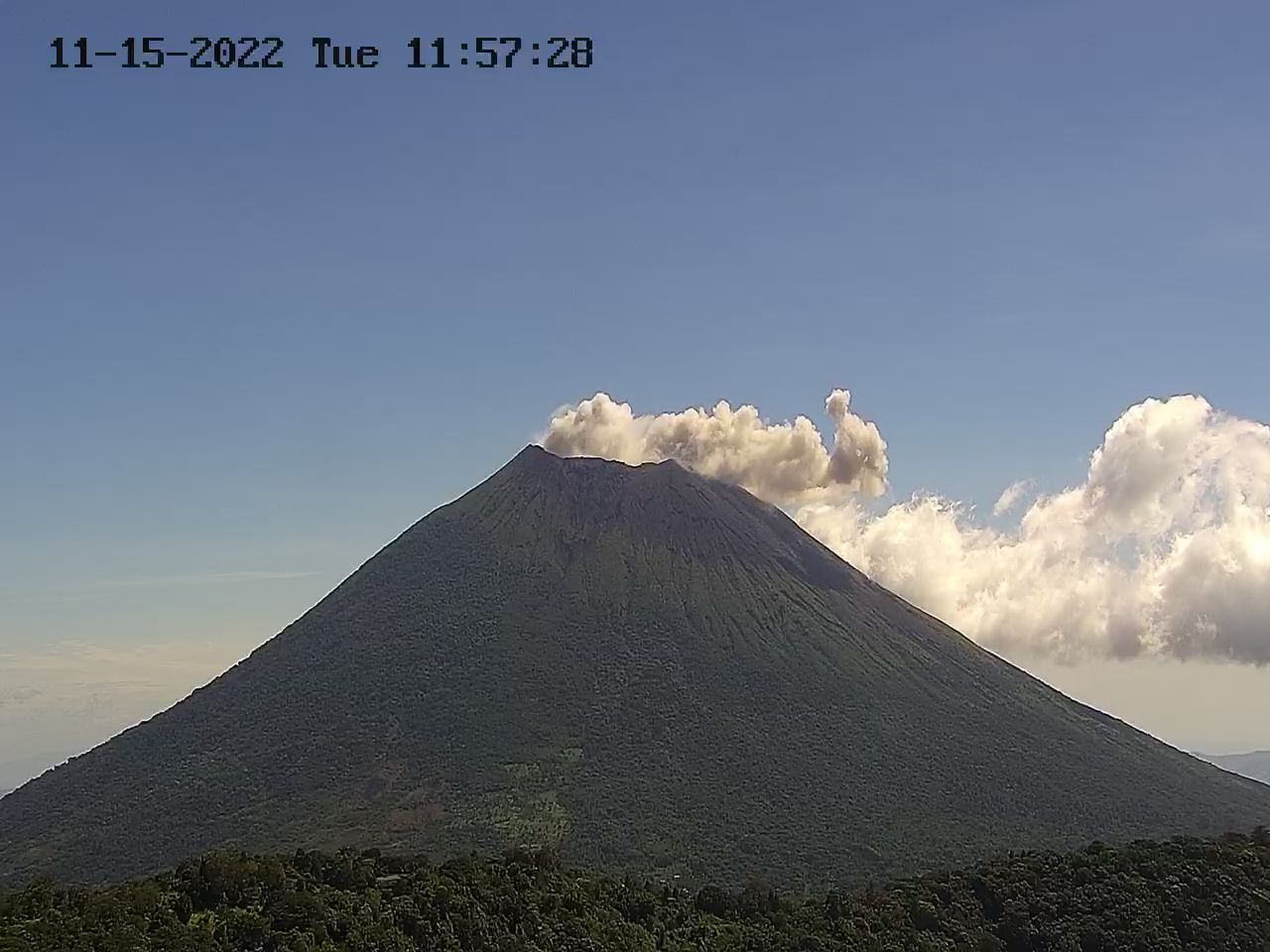 Según el observatorio ambiental, el volcán ha presentado desgasificación a través de su cráter central y, desde este martes, se han registrado con mayor frecuencia.