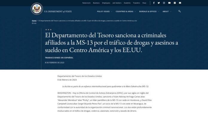 Brian Nelson, subsecretario del Tesoro, dijo a través de un comunicado de prensa, que las actividades delictivas de la MS-13 “se han convertido en una amenaza violenta y desestabilizadora” para la seguridad de las personas en Guatemala, El Salvador y Honduras.