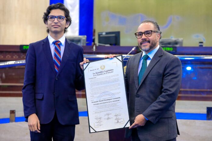 Con la finalidad de reconocer al talento salvadoreño, la Asamblea Legislativo, distinguió como Notable Estudiante de El Salvador a Fernando Daniel Domínguez quien es el único Latinoamericano que ganó medalla de oro en la Olimpiada Matemática Asiático-Pacífico (APMO).