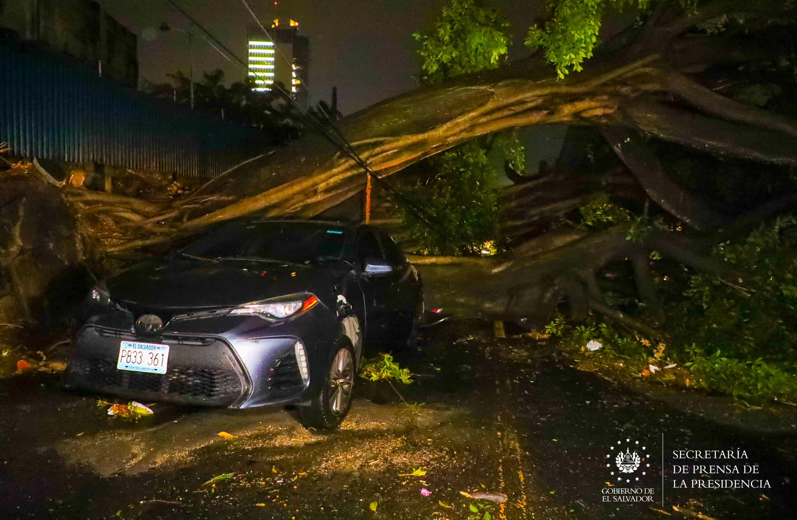 Debido a esta problemática, el Equipo Táctico Operativo y el Cuerpo de Bomberos hicieron remoción de árboles caídos en distintas arterias del Área Metropolitana de San Salvador. Entre estas, en la 75 avenida norte, a la altura del redondel de las fuentes de Beethoven; y de igual forma, se dio una pronta respuesta ante una valla publicitaria que, debido a los fuertes vientos, cayó sobre un vehículo en la carretera Panamericana, a la altura del desvío del Plan de La Laguna, en Antiguo Cuscatlán.