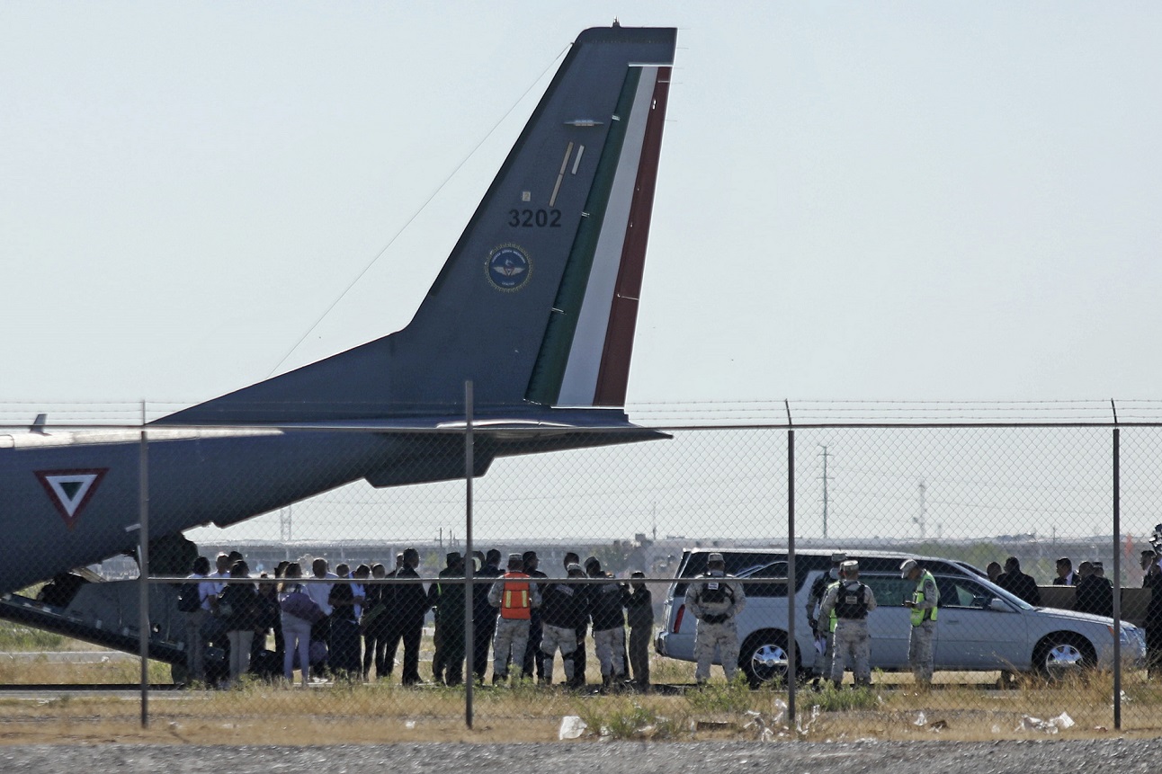 Una caravana de carrozas fúnebres trasladó los ataúdes hasta la pista del aeropuerto local, donde había agentes migratorios y de la Guardia Nacional, observó un colaborador de la AFP.