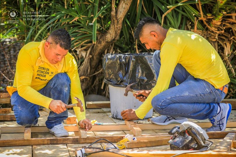 Según la Secretaría de Prensa, en diferentes puntos del país, internos en fase de confianza están demostrando lo aprendido en los distintos talleres vocacionales que se imparten dentro de los centros, apoyando en la construcción de un mejor El Salvador y resarciendo un poco del daño que causaron a la sociedad.