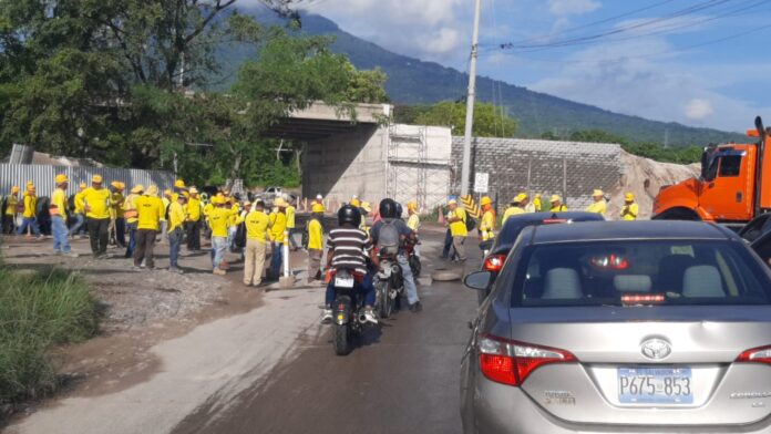 Los trabajadores del Ministerio de Obras Públicas quienes construyen obra en redondel integración salieron a la calle a protestar en contra de la empresa Meco, debido a la falta de pago aparte de malas condiciones en los que trabajan.