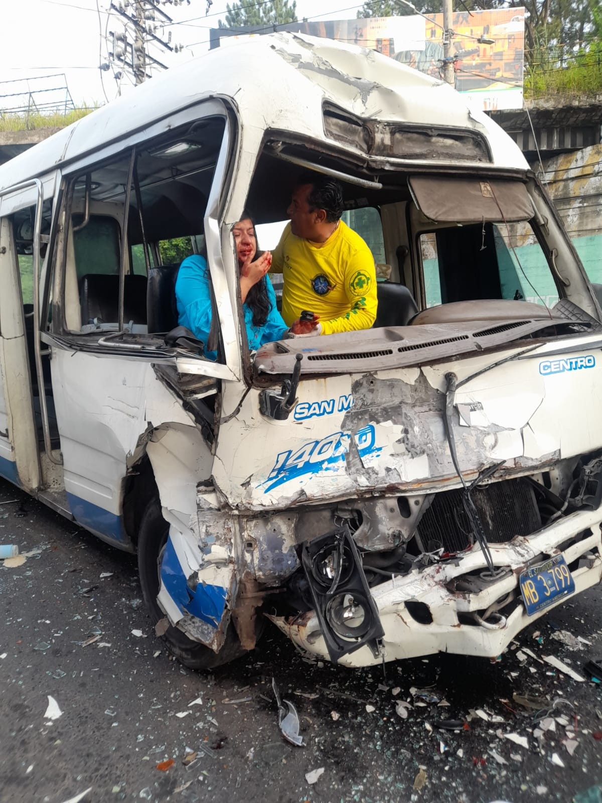 La Policía Nacional Civil informó que en el Bulevar del Ejercito, a la altura del paso desnivel del Bulevar Venezuela ocurrió un aparatoso accidente entre dos microbuses entre la ruta 3 y 140 que dejó el resultado de 15 personas lesionadas.
